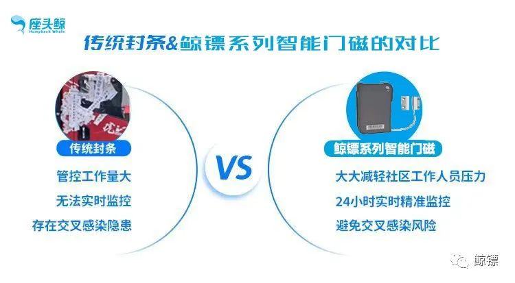鲸镖系列智能"车载门磁"数据采集设备不仅提供了温度、湿度数据的实时采集监控,同时可以记录每次开关门信息并报警。让人防与技防相结合,为实时精准防控带来极大的便利,给疫情防控加装了“安全锁”。