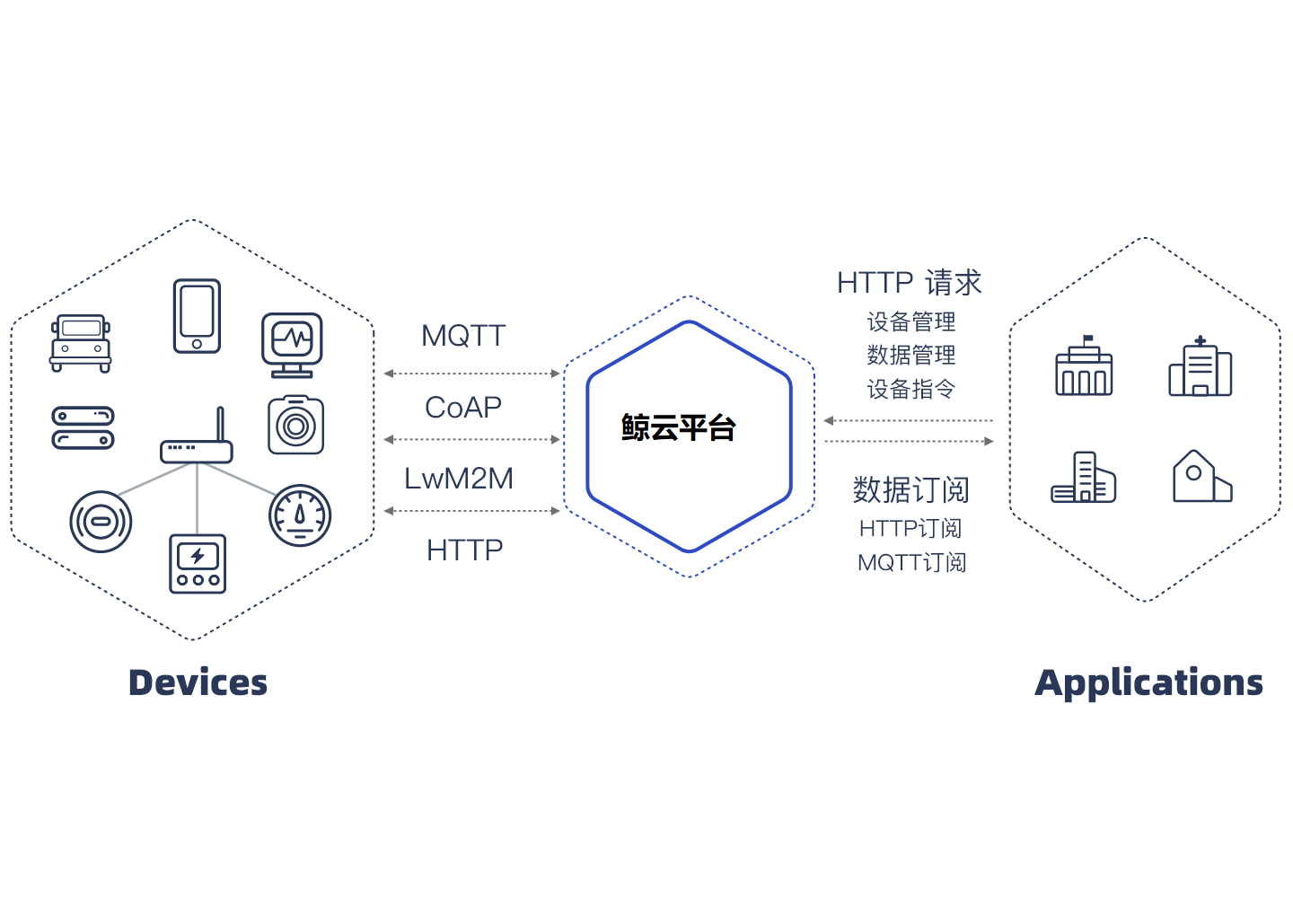 用户只需登录鲸云平台,即可快速实现设备上云和应用开发。企业基于鲸云平台的一站式标准接入能力,可大大减少技术投入,甚至可围绕鲸云平台 发展产品供应和外包研发的合作生态