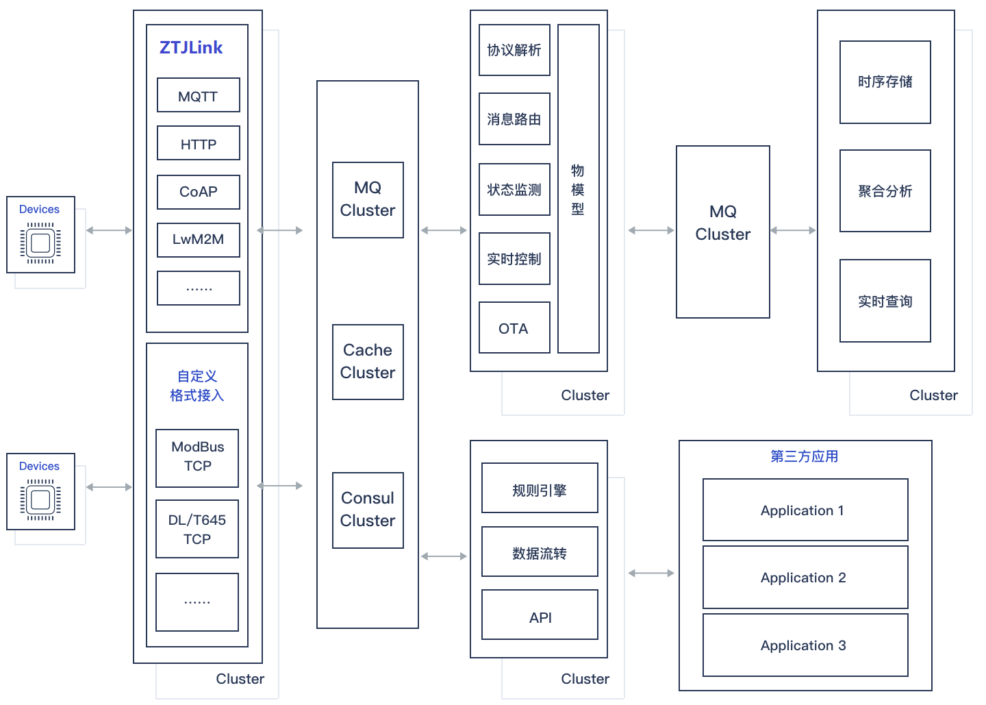 支持大规模分布式部署,千万级设备连接和数十万级 QPS 请求处理能力,毫秒级延迟,可支撑海量物联网设备接入需求