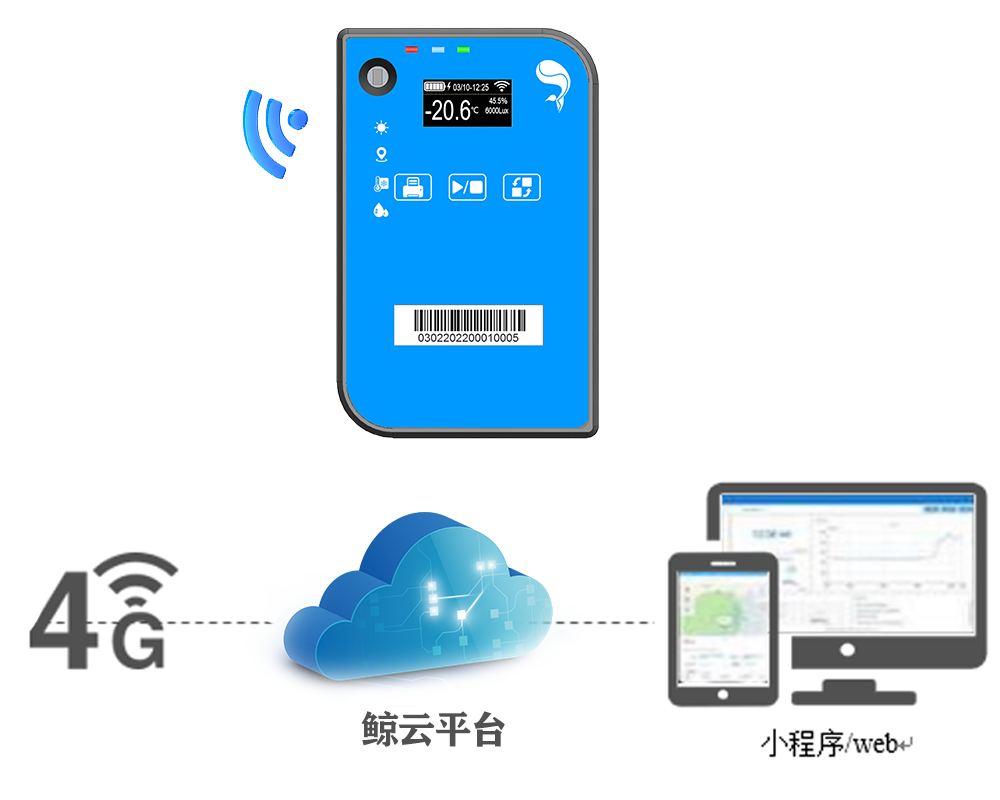 P3A冷链版产品是一款采集环境中温湿度、光照度等数据并通过4G通信技术上传到云平台的智能硬件产品。 可对需要的场景进行 7x24 小时不间断采集跟监测,数据采集后能及时上传到云平台并进行分析跟相应处理(具体操作请查看鲸云平台使用说明)。 本产品具有体积小、重量轻、安装便携、数据精准、使用安全等特点,广泛应用于冷链生鲜/食品/医药等领域的储存环境的温湿度监测。新推出内外双温版,内置温湿度传感器与外置温度传感器可同时对于双温区进行温度采集。 Web端查看平台:http://yun.zuotoujing.net/