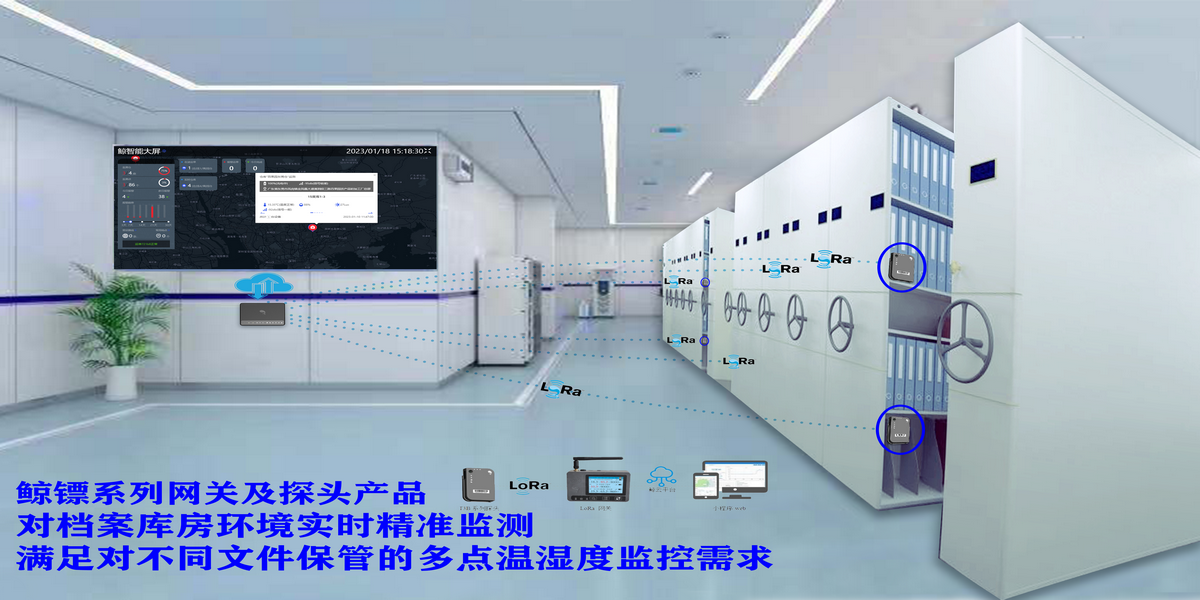 对于普通人来讲,档案工作既神秘又陌生,实际上档案管理在现实生活中扮演着极其重要的角色。档案是历史的真凭实据,是经营生产生活活动的参考依据,它们记载了社会发展的历史过程,记录了人类在发展过程中与大自然融合、人类之间的交流的宝贵经验,档案具有一定的法律效用,档案历史具有客观性,它保留了当时的历史真迹,如原始的印信、手稿、音像等。当前由于存储媒质发展形态更具多元化,但原始的纸质档案仍然占据相当大的比重。在档案的保管保护中,库房温湿度是影响档案材料老化变质速度的重要因素。不适宜的温湿度,不仅直接影响档案纸张的碎化及字迹的褪变、声像档案的失真,而且会加速一切不利因素对档案的制成材料的破坏。因此,控制好档案库房的温湿度,使之达到规定的标准,是保护好档案,延长档案寿命的一项重要措施。根据国家档案局1985年印发的《档案馆温湿度管理暂行规定》,对档案库房的温湿度要求为档案库温度14~24℃,相对湿度45%~60%,采暖库温度不小于14℃,相对湿度不低于45%;夏季温度不大于24℃,相对湿度不大于60%。每昼夜波动幅度,温度不超过±2℃;相对湿度不超过±5%。座头鲸档案馆温湿度监控管理解决方案依据资深架设便捷,机动设点,实时监控与报警的特点,十分切合档案馆类场所的监控需求。