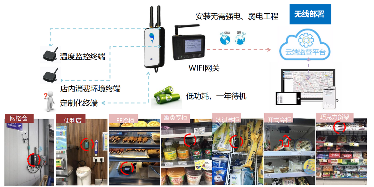 在近几年生鲜电商零售的发展如火如荼,生鲜门店发展也如雨后春笋,迅速的走入寻常百姓家。与此同时,传统食品零售便利店在逆境中不断寻找突破口以及新的增长点,据相关专业统计,2021年全国便利店销售额3492亿元,便利店行业整体发展向好。推出消费者满意的商品,即满足消费者对品质的要求。其中,食品安全是品质的核心问题。从各类销售占比情况来看,鲜食商品销售占比提升幅度较大,较2020年增长7.1%,便利店企业对鲜食品类的重视已为共识。无论是生鲜门店,新型的连锁便利店还是与之相配套的前置门店仓,对于食品温湿度的监控变得尤为重要。座头鲸采用LoRa网配备多维度探头的方案解决店内温湿度问题,实时监控,超阈值报警,有效保证食品安全。